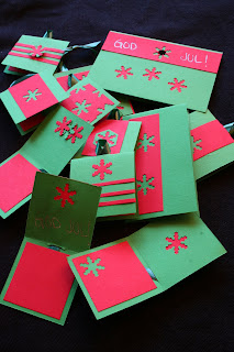 A little late for christmas cards, but it just seemed silly to wait a whole year to show these old ones. One year I decided to make gift tags to mach the wrapping paper! A bit difficult, but it was fun to have a specific colour scheme to match. Somehow it was energizing to have restrictions on how to make them. The rest are regular christmas cards. And they all say "merry christmas"! Much much easier to write in QK-letters in Norwegian... ;) Just six letters to punch out!